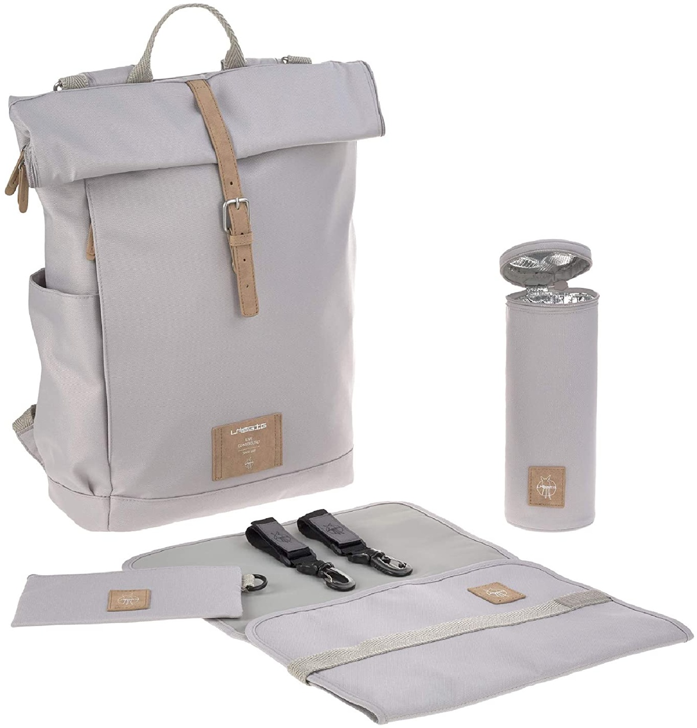| Name | LÄSSIG Baby Wickelrucksack mit Wickelunterlage, Kinderwagenbefestigung, Flaschenwärmer wasserabweisend nachhaltig produziert/Rolltop Backpack grey |