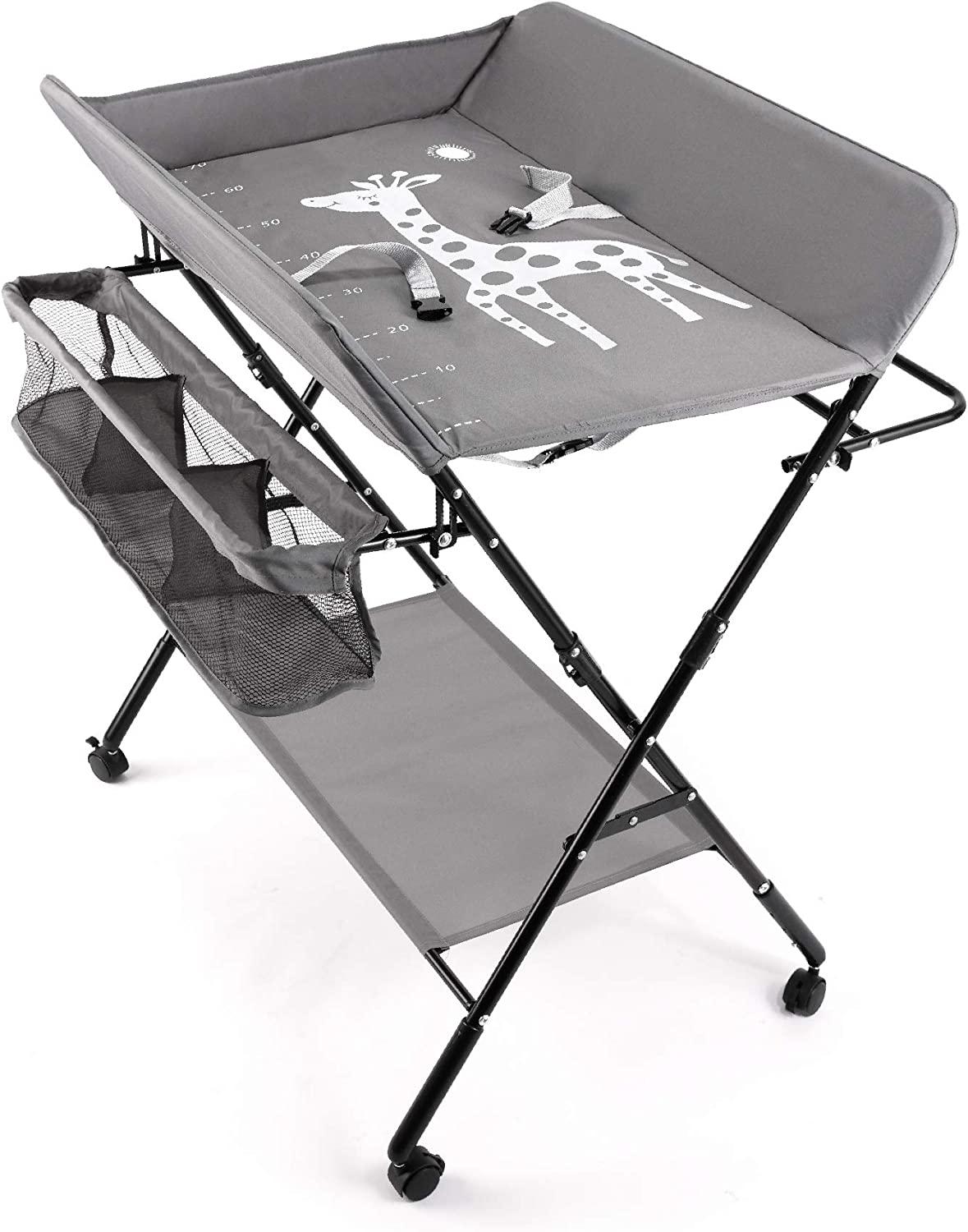 Wuuhoo 'Melvin' Wickeltisch – der perfekte Begleiter für die Wickelzeit. Mit einer gepolsterten Wickelauflage aus hochwertigem, abwaschbarem Mesh-Gewebe bietet er Ihrem Baby Sicherheit und Komfort. Das stabile Stahlgestell und die herausnehmbare Kunststoffunterlage garantieren eine feste Liegefläche. Zudem überzeugt der Wickeltisch durch viel Stauraum für Wickelutensilien und lässt sich nach Gebrauch einfach zusammenklappen – ideal für unterwegs. **Highlights** - Gepolsterte Wickelauflage für sicheren und bequemen Komfort - Strapazierfähiges, abwaschbares Mesh-Gewebe - Hochwertiges Stahlgestell für Stabilität - Viel Stauraum für Feuchttücher, Babypuder und Windeln - Klappbar für einfache Mitnahme auf Reisen **Produkteigenschaften** - Herausnehmbare Kunststoffunterlage für stabile Liegefläche - Schmaler Gurt zur sicheren Fixierung des Babys - Erhöhter Rand für zusätzlichen Schutz - Hochwertige Verarbeitung für Qualität bis zur Lieferung
