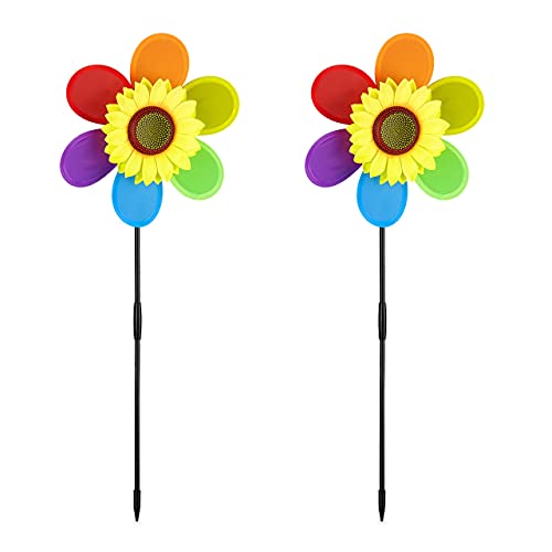 • Das Relaxdays Windrad Blume 2er Set ist eine dekorative Gartendeko im Sonnenblumen-Design und bunten Farben des Regenbogens