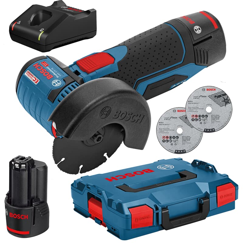| Lieferumfang | 1 x Winkelschleifer, 2 x 3 Ah Akku, 1 x Ladegerät, 1 x L-Boxx, 1 x Hartmetall-Trennscheibe Carbide Multiwheel, 2 x Trennscheibe Expert for Inox, Schutzhaube |
