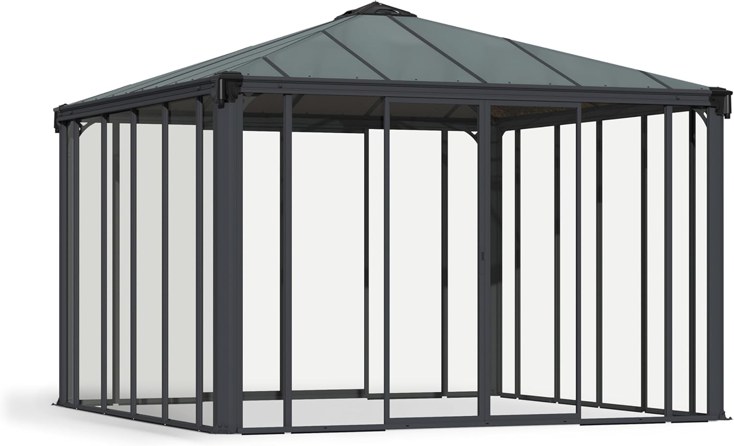 Genießen Sie die Vorzüge der Natur in dem stabilen Kaltwintergarten Ledro von Palram - Canopia. Dieser witterungsbeständige und wartungsfreie Unterstand überzeugt durch seine Dachverglasung in modernem Grau und pulverbeschichtete Aluminiumpfosten. Der Kaltwintergarten bietet 100 % UV-Schutz und optimale Luftzirkulation dank des eleganten Entlüftungssystems sowie zwei breiten Doppelschiebetüren. Mit einem integrierten Regenrinnensystem und einer Schneelast von 100 kg/m² ist er ideal für jede Jahreszeit. **Highlights** - 100 % UV-Schutz durch spezielle Dachverglasung - Zwei individuell einsetzbare Doppelschiebetüren - Abschließbar mit Schlüssel für zusätzliche Sicherheit - Inklusive Regenrinnen für effektiven Wasserablauf - 10 Jahre Herstellergarantie* **Produkteigenschaften** - Material: Aluminium - Dachpaneele aus Polycarbonat in modernem Grau - Witterungsbeständig und langlebig - Schneelast: 100 kg/m² - Einfache Montage mit zwei Personen - Rostresistent und kratzfest