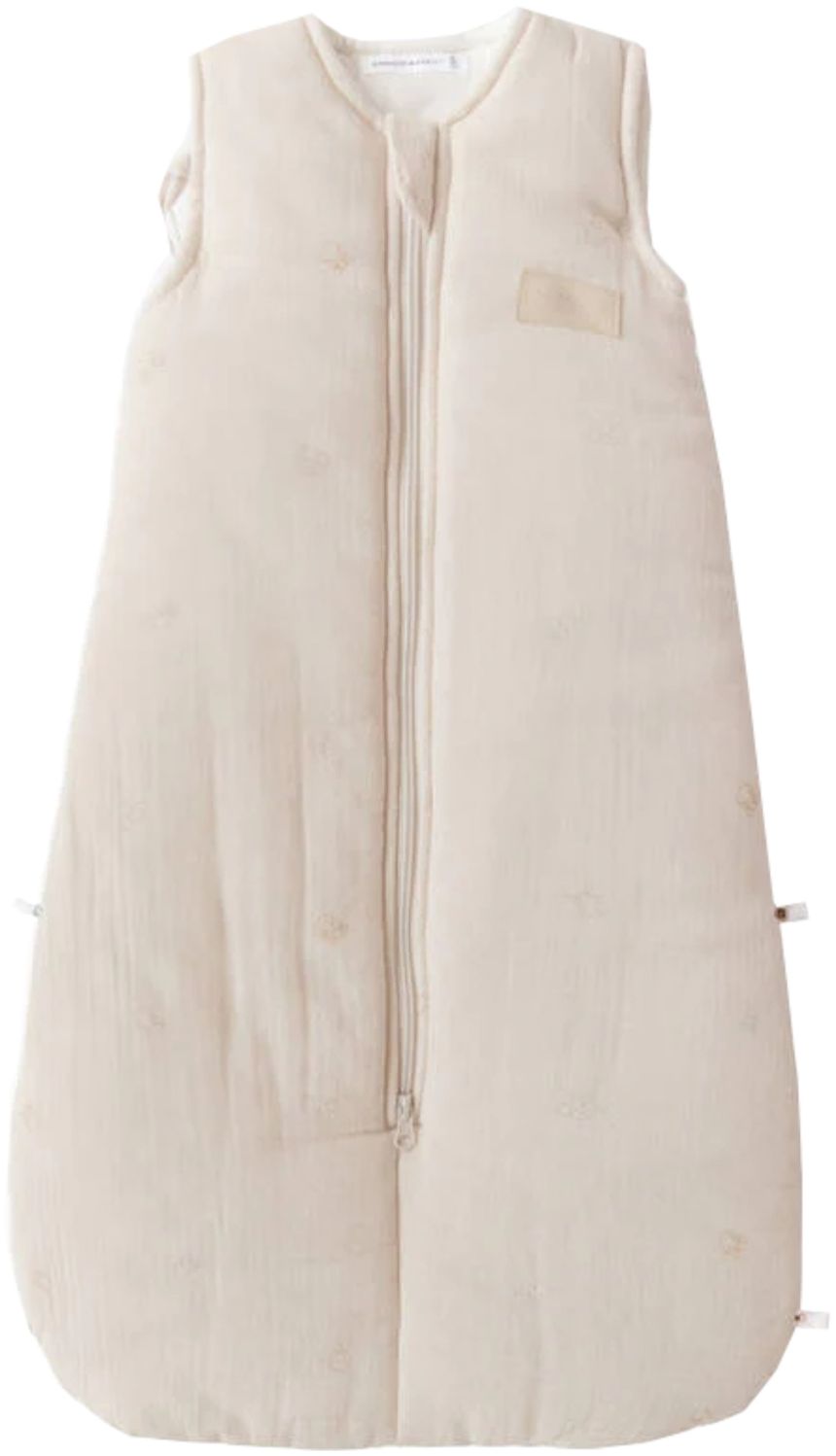 Der Bamboom Animal Friends Winterschlafsack - 6-36 Monate - Sand bietet Ihrem Kind einen bequemen und sicheren Schlaf in den kalten Monaten. Mit einem Wärmewert von TOG 2,2 sorgt er für die ideale Wärmebalance. Praktische Funktionen wie der Reißverschluss vorne, verstellbare Clips an den Armen und Knöpfe zur Längenverstellung passen sich dem Wachstum Ihres Kindes an. Hergestellt aus 70 % Bambusviskose und 30 % Bio-Baumwolle, ist der Schlafsack weich und hypoallergen. **Highlights** - Wärmewert: TOG 2,2, ideal für kalte Jahreszeiten - Verstellbare Clips für guten Sitz an den Armen - Knöpfe zur Längenverstellung - Hypoallergen und atmungsaktiv - Geeignet für Kinder von 6 bis 36 Monaten **Produkteigenschaften** - Außenseite: 70 % Bambusviskose und 30 % Bio-Baumwolle - Füllung: 100 % Bio-Bambus - Ausgestattet mit einem Reißverschluss vorne - Schlaufe zum Befestigen einer Schnullerkette - Nicht für den Trockner geeignet