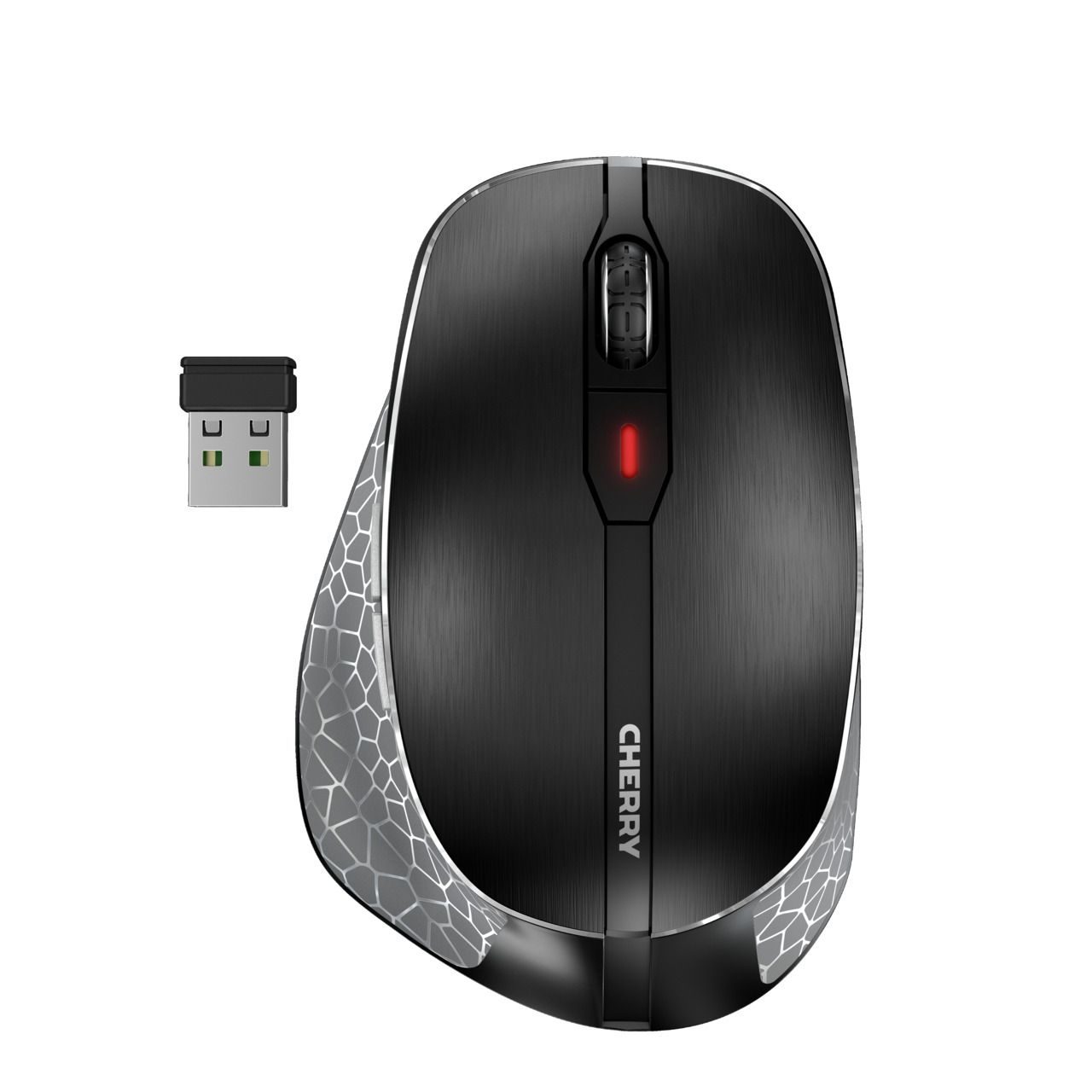 "Cherry will mit der MW 8C ERGO Nutzer ansprechen, die eine Arbeitsmaus mit seriöser, ja edler Optik suchen. Dank der gebürsteten Alu-Oberseite und den gemusterten Seitenflächen unterscheidet sich die Maus optisch tatsächlich deutlich von typischen Gaming-Mäusen. ..."