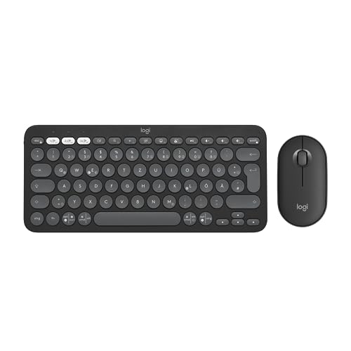 Das Logitech Pebble 2 Combo Set bietet eine sehr flache Tastatur mit runden Tasten, die ein etwas schwammiges Schreibgefühl und wenig Hub hat, aber eine ordentliche Rutschfestigkeit bietet. Die Maus hat gute Gleiteigenschaften und ist ebenfalls flach, jedoch kann sie aufgrund ihrer Form für gröbere Hände unhandlich sein. - zusammengefasst durch die Testsieger.de-Redaktion