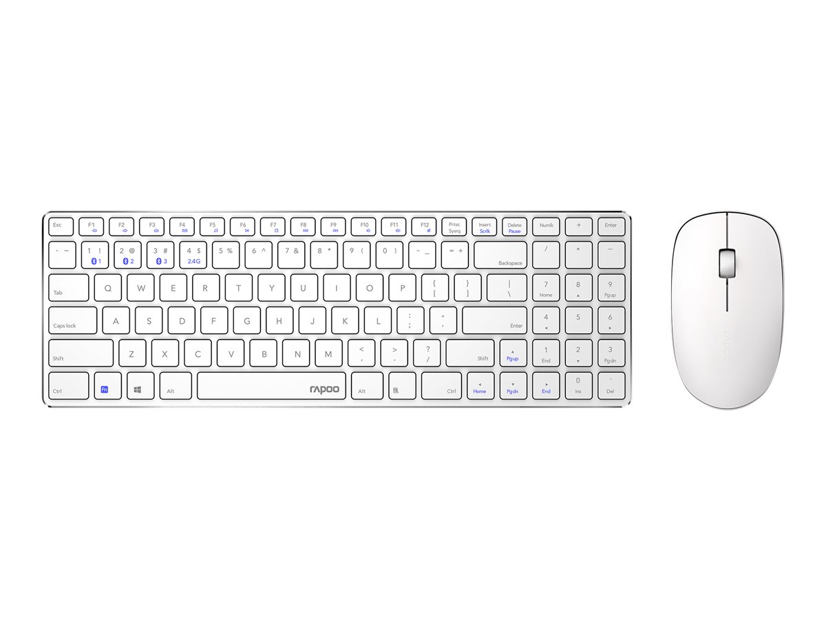 Die Rapoo 9300M Tastatur RF Wireless + Bluetooth QWERTZ Deutsch Weiß (18136) ist eine praktische Lösung für alle, die kabellos arbeiten möchten. Die einfache Verbindung mit dem PC oder Laptop ermöglicht ein schnelles und unkompliziertes Arbeiten ohne lästige Kabel im Weg. Der gute Druckpunkt der Tasten sorgt zudem für angenehmes Tippen.