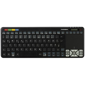 Die Thomson Funk-Tastatur mit 4in1 Universal-Fernbedienung bietet eine praktische Lösung für die Steuerung Ihres Panasonic Smart-TVs sowie weiterer Geräte wie Set-Top-Boxen, Audiogeräten und PCs. Die Kombination aus einer lernfähigen IR-Fernbedienung und einer Tastatur ermöglicht eine bequeme Bedienung verschiedener Funktionen ohne lästiges Hin-und-Herwechseln zwischen verschiedenen Fernbedienungen.