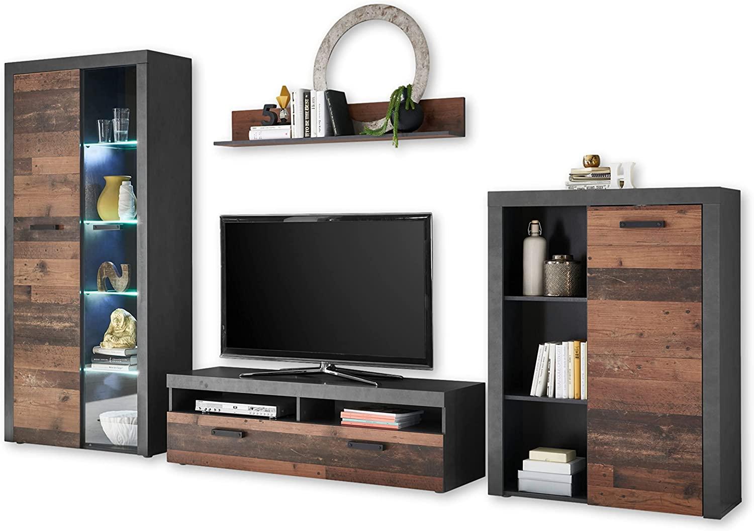Wohnwand Anbauwand Wohnschrank TV Schrank JONES Old Style Altholz Optik Nb. ca. 340 cm
