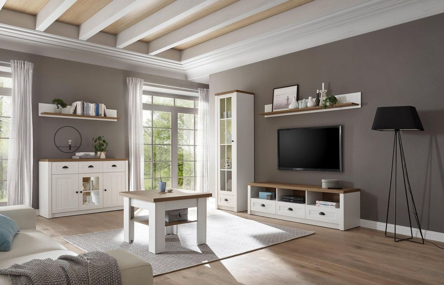 | Beschreibung | Die Home affaire Wohnwand Beauvais (3-St) vereint großzügige Aufbewahrungsmöglichkeiten mit einem ansprechenden Landhaus-Design. Das Set besteht aus einem Lowboard, einem Wandregal und einer Vitrine. Das Lowboard bietet viel Stauraum für TV-Zubehör, während die Vitrine ideal für Geschirr und Schalen ist. Das Wandregal kann individuell mit Dekorationselementen gestaltet werden und sorgt für eine harmonische Wohnzimmereinrichtung. **Highlights** - 3-teiliges Set für vielseitige Nutzung - Landhaus-Stil mit dekorativer Rahmenoptik - Großzügiger Stauraum im Lowboard - Platz für Geschirr in der Vitrine - Individuell gestaltbares Wandregal **Produkteigenschaften** - Set-Bestandteile: 1x Lowboard, 1x Wandregal, 1x Vitrine - Stil: Landhaus-Design - Funktionalität: Vielseitige Aufbewahrungslösungen **Lieferumfang** - 1x Lowboard - 1x Wandregal - 1x Vitrine - Optionales Zubehör nicht enthalten |