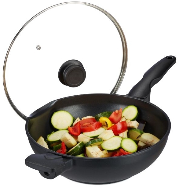 | Name | Relaxdays Wokpfanne mit Deckel, Aluminium Schwarz, 30,0 cm, Induktionsgeeignet |