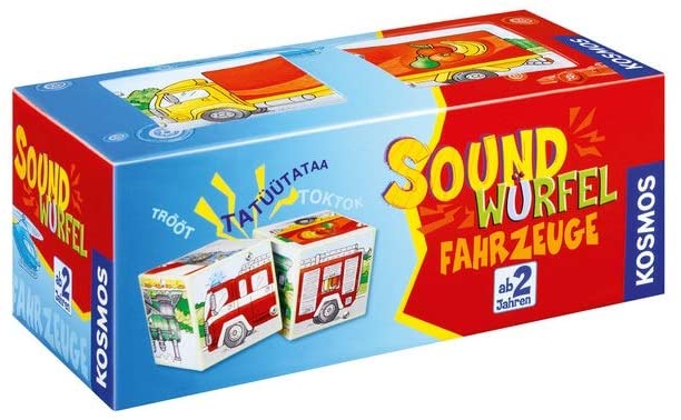 | Name | KOSMOS 697372 'Soundwürfel Fahrzeuge - Der Würfel mit Geräuschen!', ab 2 Jahren, Geräusche von Feuerwehrauto, Lokomotive, Hubschrauber, Rennwagen, LKW, Schiff |