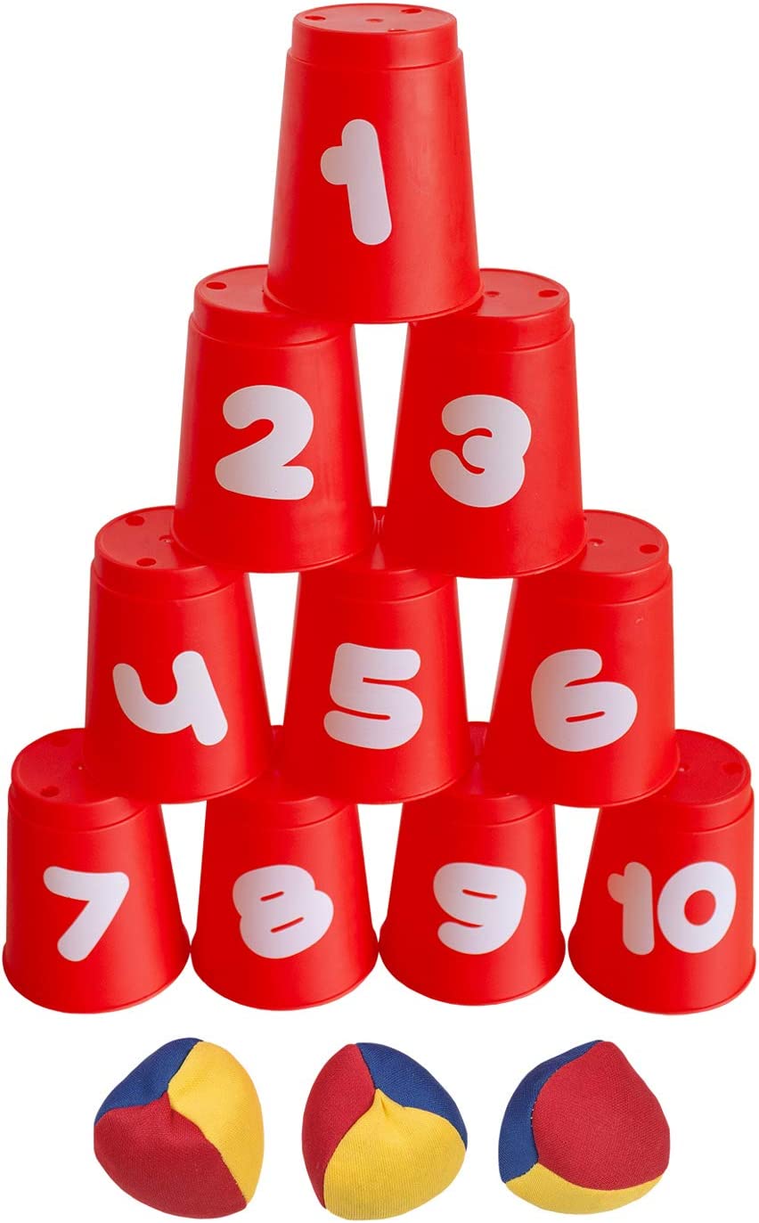 | Name | Idena 40416 - Ballwurfspiel mit 10 Bechern und 3 Bällen, ab 3 Jahren, für Geburtstagsfeiern, im Garten oder Park |