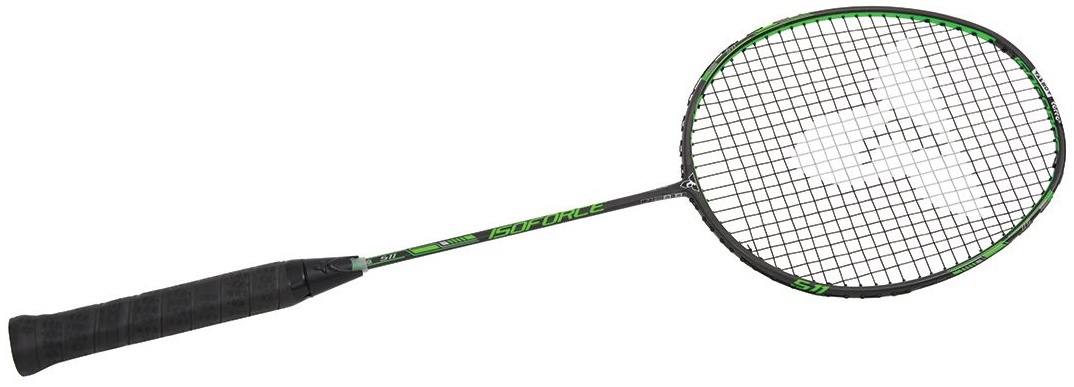 Der neue Talbot Torro Isoforce 511 ist ein handliches Allround Racket für den ambitionierten Freizeitsportler mit einem schlanken Slim Rahmen und Schaft (leicht und aerodynamisch). Er ist aus bestem Carbon4 (Hi-Modulus Graphit, leichter und härter als klassisches Graphit) und hochwertig aus einem Stück konstruiert (One Piece Bauweise). Das geringe Gewicht (82 g unbespannt bzw. 87 g bespannt) und die mittlere Balance machen ihn zu einem angenehm zu spielenden Racket. Durch die isometrische Kopfform ist der Sweetsport (optimale Treffpunkt) etwas vergrössert, das Racket verzeiht dadurch leichter Fehler in Form von nicht optimalen Treffern. Die mittlere Schaftflexibilität ist ein guter Kompromiss aus Kontrolle und Power. Durch die Airflex-Griffkappe (ein PU-Röhrchen zwischen Schaft und Griff) ist der Schaft im Griff weich und flexibel gelagert => die Flexlänge und die Gesamtflexibilität des Schaftes wird erhöht, die Power steigt. Gleichzeitig wirkt das PU vibrationsreduzierend. Bespannt ist der Isoforce 511 mit der multifilen Talbot-Torro Galaxy Saite in 0,8 mm - haltbar und elastisch. Die maximal empfohlene Bespannungshärte ist 9 kg. Talbot-Torro ist eine deutsch-britische Marke, gegründet u.a. von Derek Talbot, einem sehr guten britischen Badminton Spieler, der massgeblich dazu beigetragen hat, dass Badminton olympisch wurde. Talbot-Torro ist heute marktführend in Zentraleuropa im Bereich Freizeit-Badminton und zeichnet sich durch tolle Technologien und Ausstattung bei gleichzeitig fairem Preis-Leistungs-Verhältnis aus.