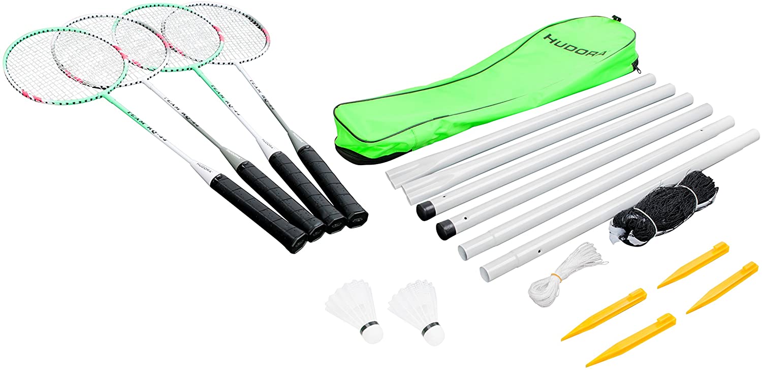 | Name | HUDORA Badminton-Set mit Netz - 4 Badminton-Schäger + 2 Kork Badminton-Bälle - 76413 |