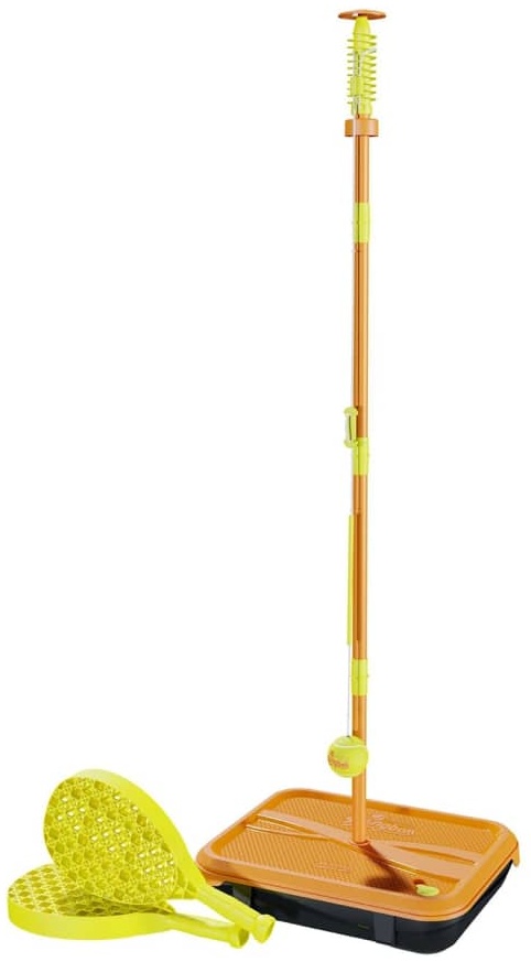 Dieses Swingball-Tennis ist ein Spiel für alle, die ein wenig wettbewerbsorientierter sind als andere. Das Tournament All Surface Swingball Tennis Set von Mookie kommt mit einer Stahlstange, die für Langlebigkeit ausgelegt ist und perfekt für die wettbewerbsstärksten Spieler ist. Die Stange kann in der Höhe bis zu 1,4 Meter verstellt werden. Dieses Paddle-Ball-Spielzeugset enthält eine Power-Play-Spirale und einen echten Tennisball, der kräftige Schläge aushalten kann. Die Tennisschläger sind mit rutschfesten Griffen ausgestattet. Sie können die Schläger nach dem Gebrauch an der Halterung aufhängen. Die neue und verbesserte Tournament All Surface Basis verfügt über einen integrierten Griff für den einfachen Transport und einen Wasserstopp, um ein Auslaufen zu verhindern. Außerdem hat die Basis spezielle Standfüße für ein stabiles Spiel und kann in eine praktische Tragetasche verwandelt werden. Das Swingball-Spiel ist dank des Sockels auch für den Garten geeignet. Sie können also überall und auf jedem Untergrund spielen. Füllen Sie einfach den Sockel mit Sand oder Wasser und schon kann es losgehen!