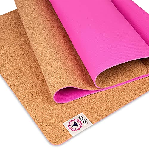 SAPURA XXL Yogamatte rutschfest - Kork und Naturkautschuk 180cm - Extra lang + Tragegurt + Nachhaltige Yoga Matte groß Überlänge Pink