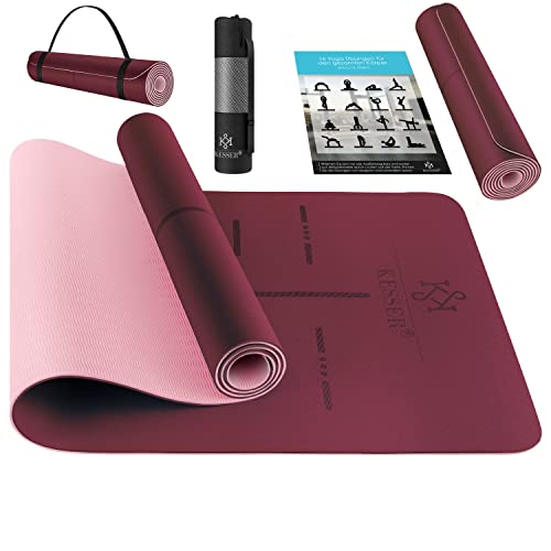 Die KESSER® Gymnastikmatte bietet eine gute Dicke und Rutschfestigkeit, was sie für Fitness- und Yoga-Übungen geeignet macht. Sie hat ansprechende Farben und nützliche Markierungen für die Orientierung. Allerdings kann die Matte abfärben und hat einen unangenehmen Geruch. Zudem ist die Polsterung dünn, was für einige Benutzer unangenehm sein könnte.