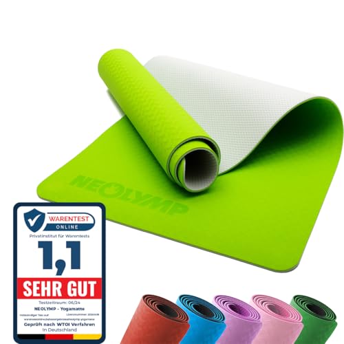 Die NEOLYMP Yogamatte überzeugt durch ihre angenehme Haptik und Qualität. Sie ist rutschfest und eignet sich gut für verschiedene Übungen wie Yoga, Pilates und Bodyweight-Training. Die Matte ist leicht und gut transportierbar, was sie ideal für unterwegs macht. Einige Nutzer empfinden die Dicke jedoch als zu gering für bestimmte Übungen, und anfangs kann ein starker Geruch nach Kunststoff auftreten. Insgesamt bietet die Matte ein gutes Preis-Leistungs-Verhältnis.