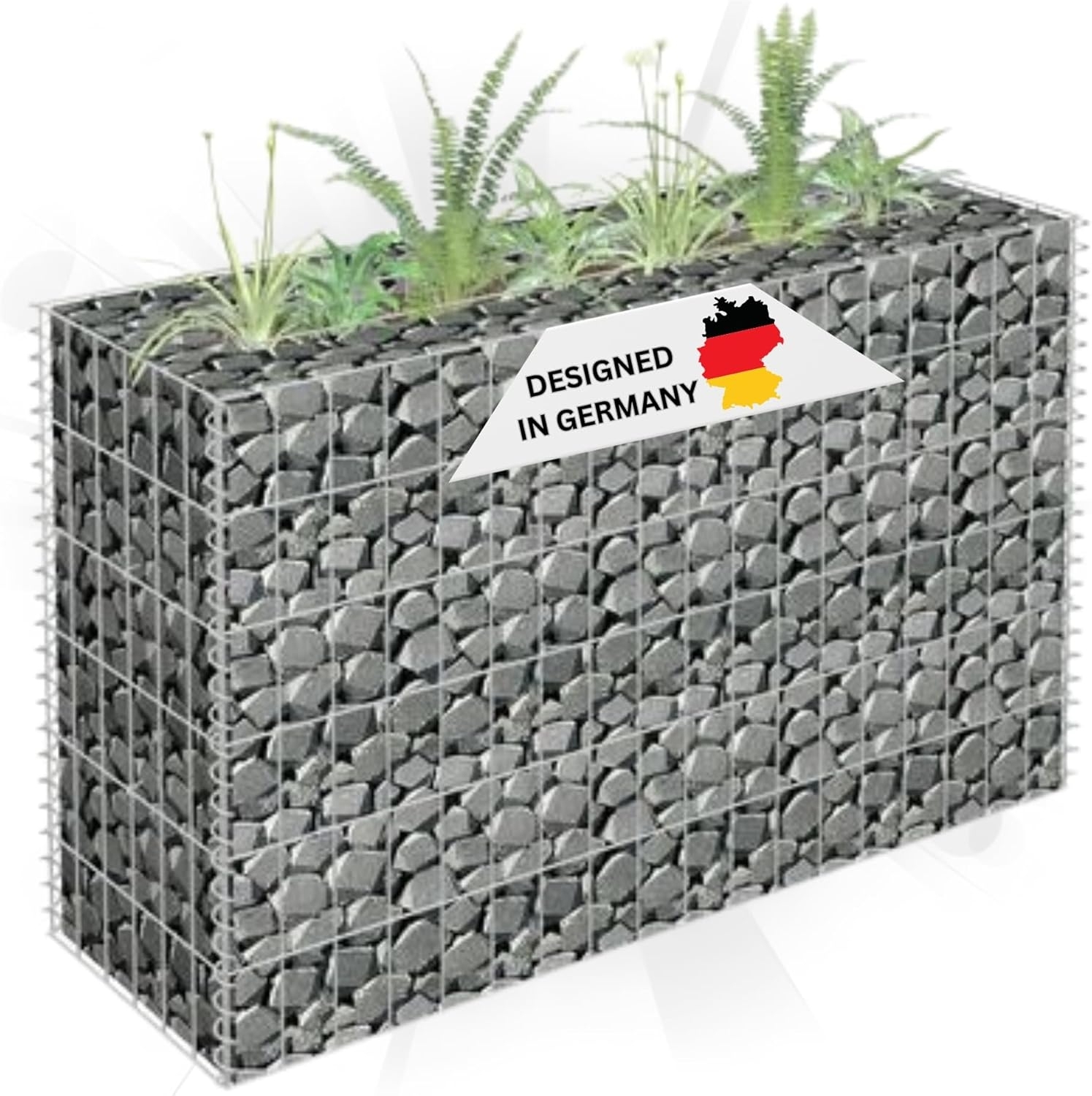 Mit dem Gabionen-Hochbeet ROON von DELUKE, auch Steinkorb genannt, gestalten Sie ein stabiles und stilvolles Blumen- oder Hochbeet. Der robuste Drahtkorb aus rostfreiem, witterungsbeständigem, verzinktem Stahl ist für die Befüllung mit Steinen oder Kies konzipiert und bietet hohe Stabilität und Langlebigkeit. Das extra verschweißte Maschengitter sorgt für zusätzliche Festigkeit. **Highlights** - Schönes Hochbeet für stilvolle Gartenbegrenzungen - Extrem stabil durch verzinkten Stahl - Extra verschweißt für hohe Stabilität - Vielseitig einsetzbar im Garten oder Hof - Schneller Aufbau für maximale Nutzerfreundlichkeit **Produkteigenschaften** - Farbe: Silber - Material: Verzinkter Stahl - Außenmaße: 90 x 30 x 60 cm (L x B x H) - Innenmaße: 70 x 10 x 60 cm (L x B x H) - Wandstärke: 10 cm - Maschenweite: 10 x 5 cm (L x B) - Drahtdurchmesser: 3,5 mm - Hohe Belastbarkeit - Zusammenbau erforderlich: Ja **Lieferumfang** - Gabionen-Hochbeet ROON - Steine und Pflanzen nicht im Lieferumfang enthalten