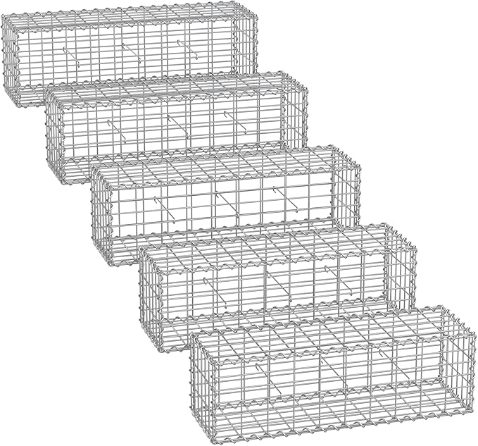 | Name | SONGMICS GabioneGabionenkorb, 100 x 30 x 30 cm, 5er Set, Metall-Steinkorb mit 5 x 10 cm Maschenweite für Mauersteine, verzinkt, Steingabione Mauer, silber GGB533 |