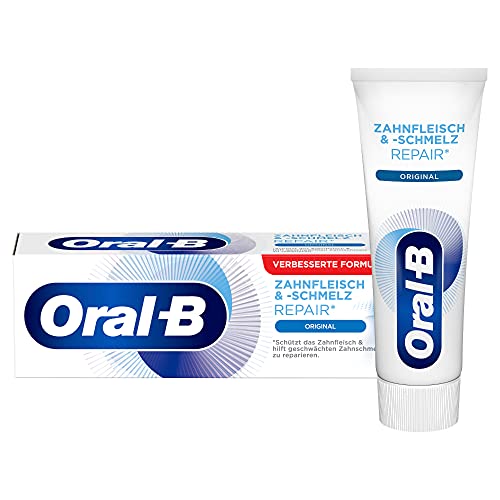 Die Oral-B Zahnfleisch und Schmelz Repair Original Zahnpasta erhält gemischte Bewertungen von Kunden. Einige loben die Wirksamkeit bei schmerzempfindlichen Zähnen und entzündetem Zahnfleisch, während andere den Geschmack kritisieren.