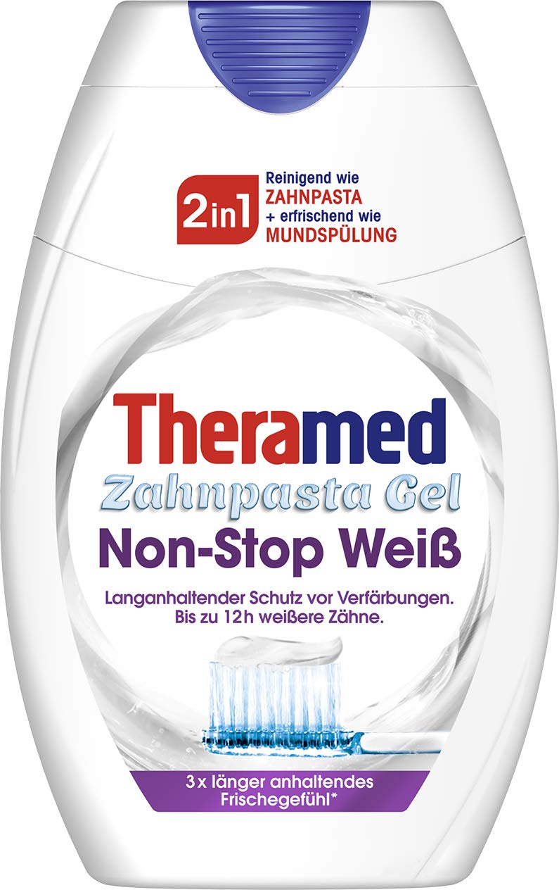 Die Theramed 2in1 Non-Stop White Zahnpasta Gel bietet eine effektive Reinigung, einen angenehmen Geschmack und ist sanft zu Zähnen und Zahnfleisch. Die einfache Dosierung und das gute Preis-Leistungs-Verhältnis machen sie zu einer praktischen Wahl für die tägliche Zahnpflege. Einige Nutzer bemängeln jedoch die flüssige Konsistenz und den Whitening-Effekt.