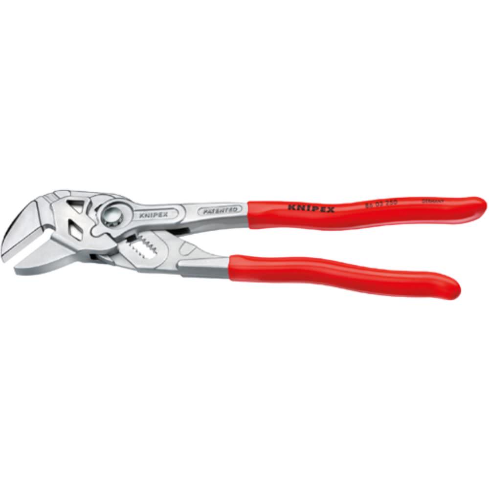 Der KNIPEX 86 03 300 Zangenschlüssel ist ein Werkzeug, das sowohl als Zange als auch als Schraubenschlüssel genutzt werden kann. Die parallel laufenden Backen und die Möglichkeit des Einstellens machen ihn zu einem praktischen Helfer in der Werkstatt oder auf Baustellen. Dank seiner sehr guten Qualität und sauberen Verarbeitung liegt er gut in der Hand und ermöglicht präzises Arbeiten. Besonders hervorzuheben sind die fehlende Backenzahnung sowie eine Öffnungsgröße von bis zu 60mm, wodurch Verschraubungen nicht beschädigt werden können.