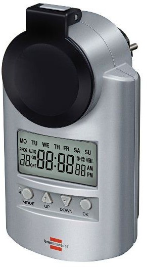 | Besonderheiten | extra großes Display, 20 Ein-/Aus-Programme mit Wochentag-, Stunden- und Minuten-Einstellung, Einfache 4-Knopf Bedienung, Datenspeicher bei Stromausfall |