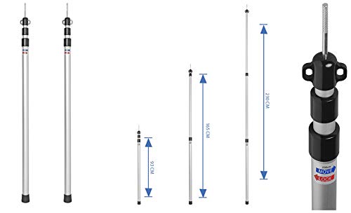 • Sie lässt sich einfach auf die gewünschte Länge von 93 bis 230 cm ausziehen und ist dank des dreiteiligen Teleskopsystems stufenlos einstellbar