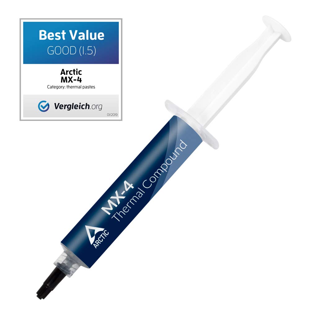 Die ARCTIC MX-4 ist eine gute Wärmeleitpaste mit einem guten Preis-Leistungs-Verhältnis. Sie ist einfach zu verarbeiten, elektrisch nicht leitend und nicht ätzend. Sie kann auch für Grafikkarten verwendet werden.