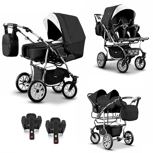Elcar Zwillingskinderwagen 5 in 1 City Twin inkl. Autositze - 16 Teile - in 19 Farbenmit variabler Montage und Federungen