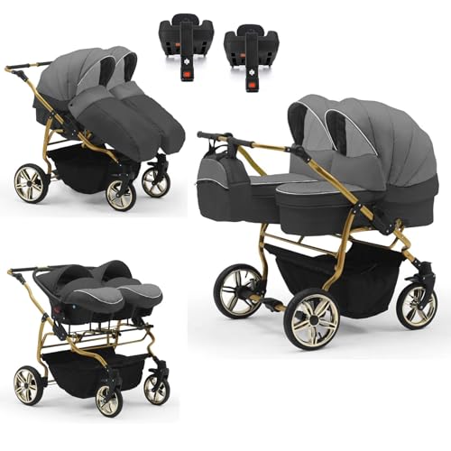 Elcar Zwillingskinderwagen 5 in 1 Duet Lux Goldedition mit Autositzen und Iso Bases - 14 Teile - 20 Farben